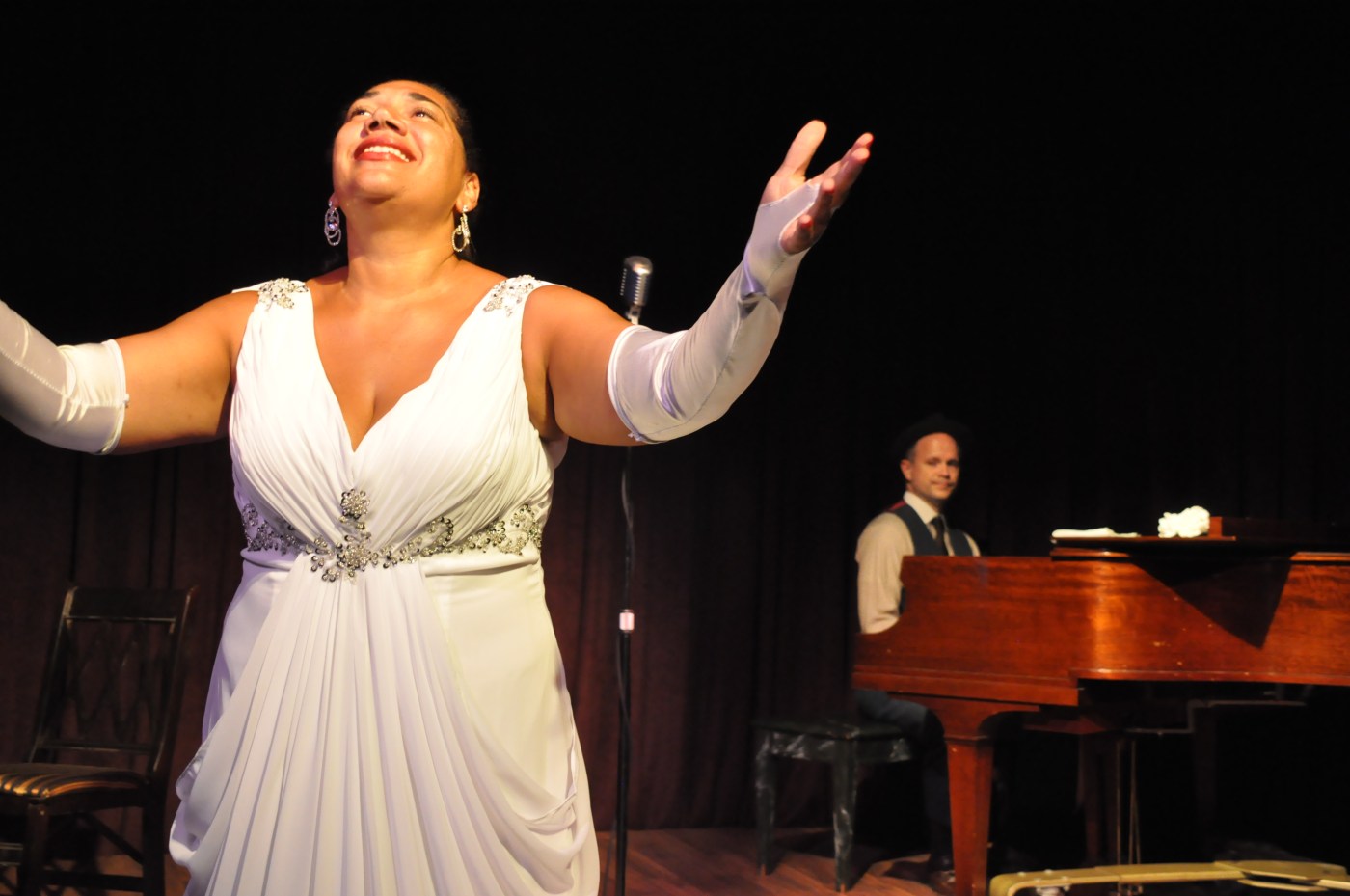 Ms. Harrington was joined on stage by pianist David Lane who played Jimmie Powers, Kady Day’s dedicated and faithful accompanist. Daniel Alvarez recreated the intimate setting of tables, microphone and piano Emerson Bar and Brill in Philadelphia, Pa. which was apparently the last performance of Lady Day before she died in 1959 at age 44.